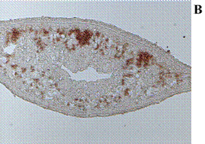 e su sezione (B) con il marcatore molecolare di proliferazione DjMCM2