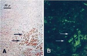 B) Dimostrazione istochimica dell'attività di GGT (Dominici et al., 2003a)