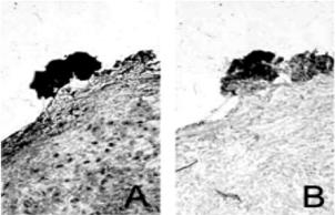 Fig. 1.10 GGT cataliticamente attività in microtrombi presenti sulla superficie di una placca aterosclerotica umana.