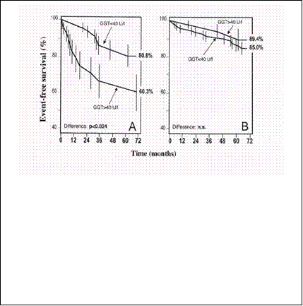 prognostico dell'attività della GGT sierica per morte cardiaca e infarto non fatale è stato confermato. In particolare, il significato prognostico