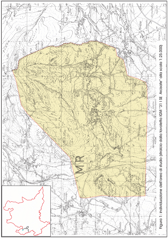 Detto settore risulta compreso nel foglio 31 I SE "Arcisate" della carta IGMI alla scala 1:25.000 (figura 1). In particolare le cave di pietra oggetto del presente lavoro sono ubicate sul versante meridionale del massiccio del Monte Orsa, in località Piamo-Vallera (Comune di Viggiù) e prendono rispettivamente il nome di Cava Danzi e Cava Beltrami.