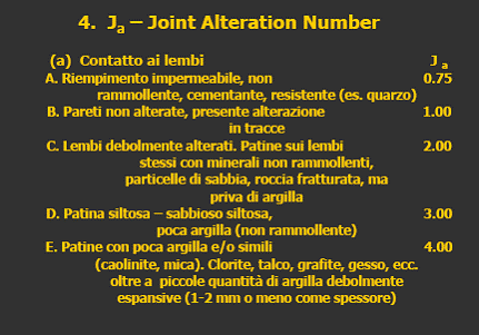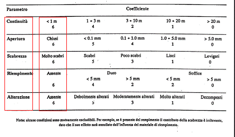 Tabella 3.16. Coefficienti numerici relativi allo stato delle discontinuità per la determinazione dell'RMR.