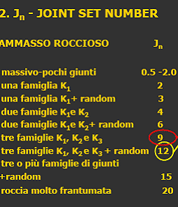 Tabella 3.21. Coefficienti numerici relativi al numero di sistemi di discontinuità per la determinazione del Q.