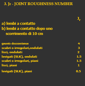Tabella 3.17. Coefficienti numerici relativi allo stato delle discontinuità per la determinazione dell'RMR