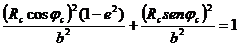 per trasformare tale equazione in coordinate polari, notiamo come le coordinate x e y di un generico punto P sulla superficie dell'ellissoide rappresentino la proiezione del raggio Rc sugli assi cartesiani e quindi