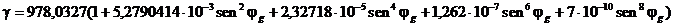 utilizzando ora la 10) per stimare l'accelerazione di gravità g (sostituiamo la gravità g con la gravità normale calcolata sull'ellissoide) e la 16) per calcolare l'accelerazione centrifuga, si ottengono i seguenti valori