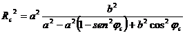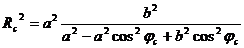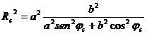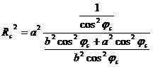 Dove Rc indica la distanza dal baricentro dello sferoide e c la latitudine geocentrica. Il significato dei parametri a ed si ricava facilmente.