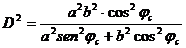 Eseguendo le opportune sostituzioni, si ottiene l'equazione dell'ellisse in coordinate polari in funzione della latitudine geocentrica