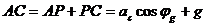 Abbiamo già visto come l'accelerazione gravitazionale g può essere considerata la somma vettoriale dell'accelerazione newtoniana aN e dell'accelerazione centrifuga ac. Possiamo dunque determinare il modulo dell'accelerazione newtoniana (gravità vera) nel punto P di latitudine geografica g che, per la regola del parallelogramma, è uguale al segmento BC.