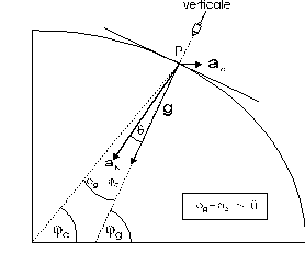 ora, poiché l'angolo che la verticale forma con la direzione del vettore accelerazione centrifuga è uguale alla latitudine geografica g, possiamo scrivere