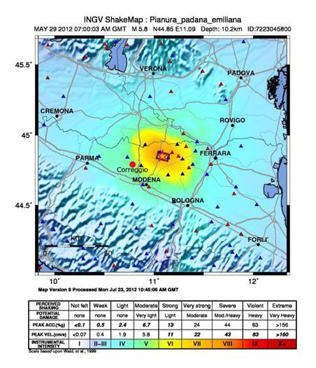 Figura 1.4: Mappa di scuotimento relativa la sisma del 29 maggio 20 2