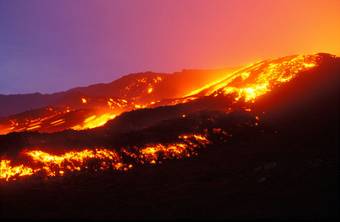 fluida incandescente che si espande in lingue di fuoco chiamate colate laviche.