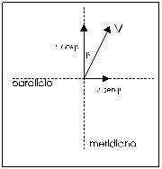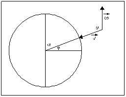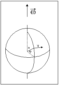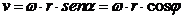 dove a è l'angolo (convesso, minore di 180°) compreso tra i due vettori, cosicché r sin a è la proiezione di r sulla retta perpendicolare che congiunge il punto P all'asse di rotazione e rappresenta dunque la distanza di P dall'asse. Nel caso della terra è facile verificare che, utilizzando il raggio terrestre, la velocità lineare di un punto a latitudine j è pari a