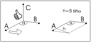 parallelogramma avente per lati i vettori A e B (dove a è l'angolo convesso), direzione