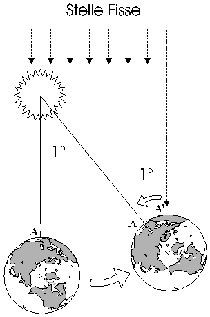 Come abbiamo già visto, le stelle più vicine alla terra sembrano oscillare rispetto a quelle più distanti (considerate fisse) a causa della diversa posizione di osservazione che la terra assume durante il suo moto di rivoluzione. L'angolo di oscillazione è tanto minore quanto più distanti sono gli astri osservati.