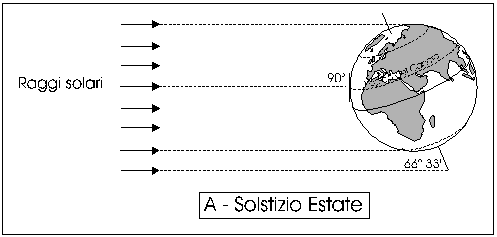A) punto in cui è minima l'inclinazione dell'asse rispetto ai raggi solari (66° 33'). L'emisfero boreale e più esposto alla radiazione solare.