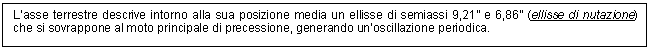Il movimento doppio conico dell'asse non è regolare, ma si attua con piccole ondulazioni dette nutazioni (Bradley - 1736). Ciascuna nutazione si completa in 18,6 anni ed è dovuta alle perturbazioni gravitazionali prodotte dalla rotazione oraria (retrograda) della linea dei nodi lunari.