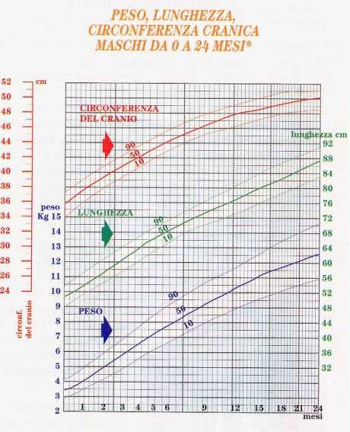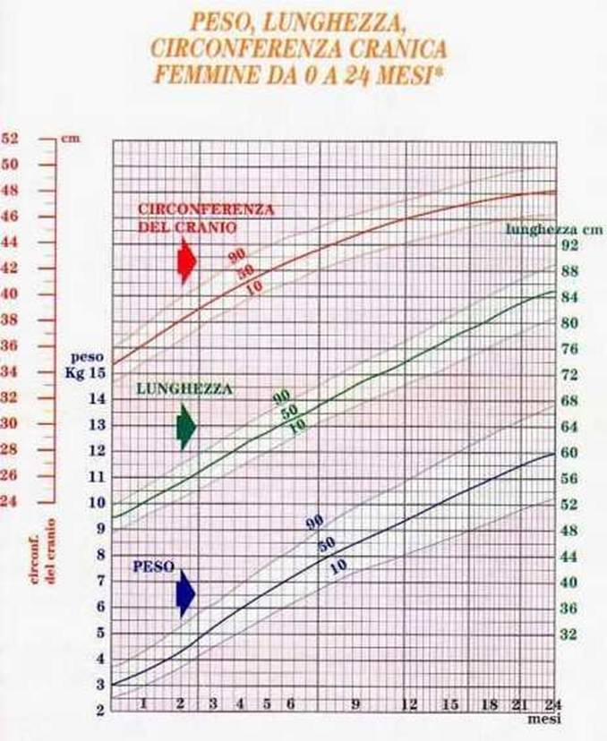 modifiche di peso, altezza e circonferenza del cranio vengono riportate in