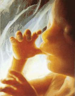 - 12^ SETTTIMANA GESTAZIONALE: l'encefalo è tutto delineato, il feto potrà succhiare il pollice (ciò può essere considerato un primo atto mentale), deglutire e mostrare i primi movimenti respiratori.