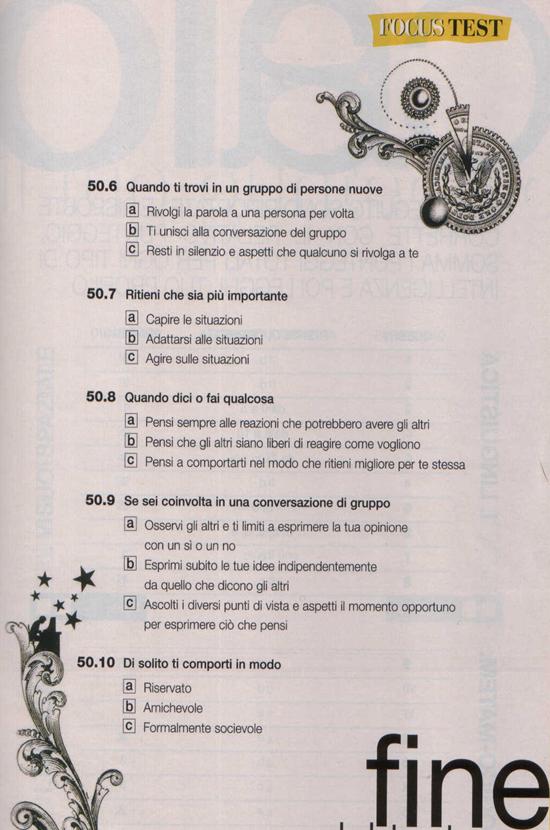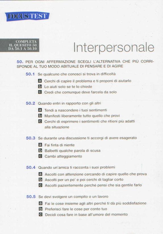 di personalità: servono per conoscere alcuni aspetti della nostra personalità ( test delle 5 A)