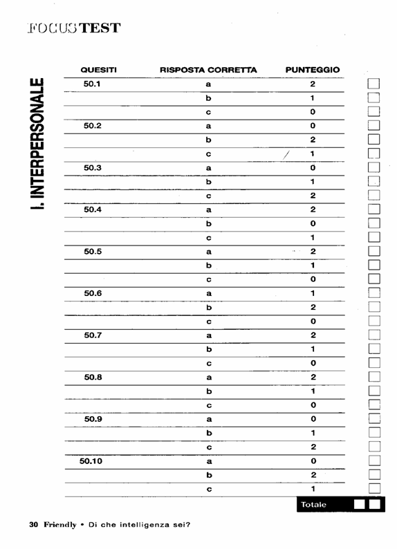 Riportiamo di seguito un esempio relativo al test sulla misura dell'intelligenza interpersonale