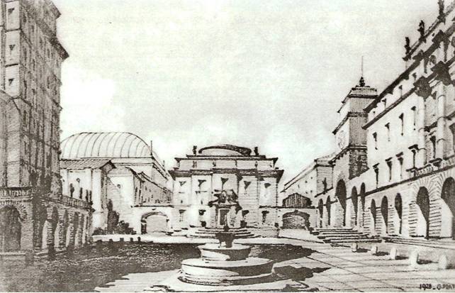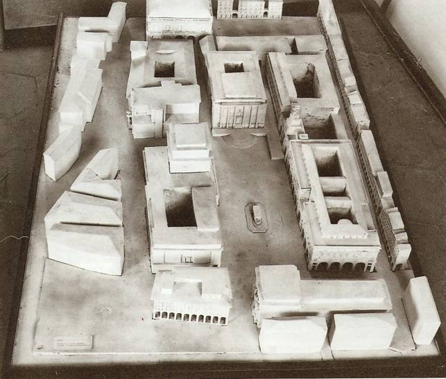 Uno dei primi plastici nei quali si vede come doveva essere realizzato il palazzo delle poste.