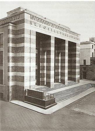 La versione successiva dell'edificio, che coincide più decisamente con la destinazione a sede delle poste, come conferma la scritta sulla facciata, cambiò vistosamente le forme. In un disegno del 1930 scomparivano le arcate che chiudevano le vie laterali al palazzo e la facciata assumeva l'organizzazione a tre grandi archi, annunciata anche in uno schizzo preparatorio autografo di Piacentini. Il palazzo presentava due aperture ad arco anche sui fianchi, minori di quelle di facciata, in corrispondenza del porticato d'ingresso. La facciata era troncata superiormente da una linea orizzontale, con l'inserimento di una fascia di fastigio leggermente arretrata, così come, sempre frontalmente, il palazzo presentava, ai due lati, due fasce verticali arretrate. Addossate ai quattro pilastri corrispondenti ai tre fornici, erano poste altrettante colonne, a rocchi evidenziati, troncate un poco sotto la quota di imposta dell'arco e sormontate da statue, con un assetto complessivo simile a quello effettivamente realizzato ai lati dell'arco posto sotto la torre della Rivoluzione fascista.