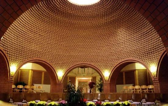 Asilo a nord di Berlino, progettato su una superficie di 8 0 m nel quartiere Eden di Orianenburg. La cupola nell immagine che copre la sala polivalente ha un diametro di 1m e un altezza di 6,80m e risulta essere la cupola esistente più ampia realizzata con mattoni in terra cruda, senza l utilizzo di centine ma con l ausilio di uno strumento a rotazione variabile progettato
