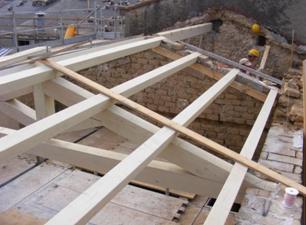 Figura .2 2 Casa Secci. Realizzazione della struttura di copertura con travi e capriata in legno lamellare in