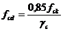 La resistenza di calcolo del calcestruzzo fcd risulta: