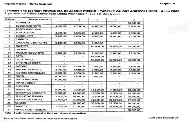 l’indennità quindi è pari al Valore Agricolo Medio VAM del terreno