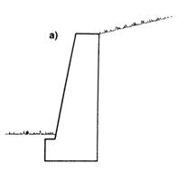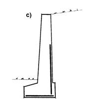 c)MURI A SEMIGRAVITA’:Simili a quelli a gravità ma con spessore più ridotto in quanto le tensioni di trazione per flessione vengono fatte assorbire da un’armatura metallica anziché con un aumento dello spessore del muro.