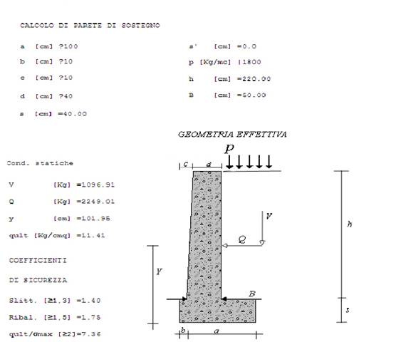 Il muro utilizzato da noi per la strada in questione è un muro di sostegno a gravità,ed abbiamo qui di seguito svolto i calcoli per il dimensionamento dello stesso: