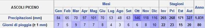 Le precipitazioni medie annue superano i 1000mm, distribuite mediamente in 80 giorni.