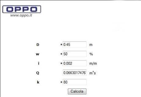 In oltre ai fini del dimensionamento delle canalette di raccolta e trasporto delle acque piovane,fissiamo un diametro di 0.45m e scegliamo di realizzarle in cemento liscio,che avrà una scabrezza di K=80;