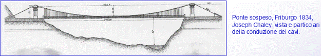 In questi anni si affinò una seconda tipologia di ponti in alternativa a questo, pur mantenendo lo stesso schema architettonico, prevedeva invece di catene lunghi fasci di filo di ferro paralleli, detti, secondo la loro disposizione, cavi di sospensione o di ritenuta. L'adozione dell'uno o dell'altro sistema dipendeva dall'economia e dalla solidità, ovvero dallo stato di progresso che ciascuna nazione aveva raggiunto nel campo della metallurgia, da questioni legate alle tecniche di produzione, dai tempi e dagli oneri di trasporto, di costruzione e di manutenzione, dalla sicurezza e durata nel tempo che essi erano in grado di assicurare. In Gran Bretagna si preferì molto più spesso quella" a catene". In Francia fu adottata prevalentemente la tipologia dei ponti sospesi a fili di ferro. In Italia furono adottate entrambe le tipologie, ma in alcuni Stati prevalse quella "britannica" in altri quella "francese". In Toscana ad esempio furono realizzate strutture sospese "a fil di ferro, ma gli stessi ingegneri furono obbligati, in Campania ad utilizzare il sistema a "barre" per la costruzione di un ponte sospeso sul fiume Sele, poiché, come sostenevano gli ingegneri del Corpo borbonico di ponti e Strade, "sino a quando non saranno costruite delle filiere, la scarsezza e l'alto prezzo del ferro filato eleverebbe purtroppo la spesa di simili opere e perciò bisogna avvalersi delle barre".Molti tecnici d'oltralpe furono direttamente coinvolti nella progettazione di ponti sospesi in Italia, contribuendo in tal modo a diffondere queste nuove tecnologie costruttive.