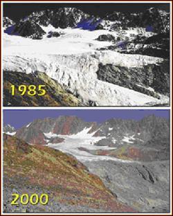 I ghiacciai alpini hanno perso fino agli anni '70 un terzo della loro superficie e metà della loro massa. Dagli anni '80 Ie masse del ghiaccio hanno subito un'ulteriore riduzione del