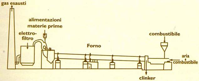 I forni sono lunghi fino a 10 metri e sono forni che lavorano 24 ore su 24 perché se per caso si dovessero spegnere sarebbe difficile e costosissimo riportarli a temperatura: il clinker cuoce a 1300°, quindi è chiaro che una volta arrivati a temperatura esso non si spegne più, l'aria viaggia in contro corrente