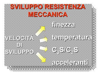 La velocità di sviluppo della resistenza si può aumentare macinando più finemente il cemento, avrò così i cementi a rapido indurimento e ad alta resistenza.