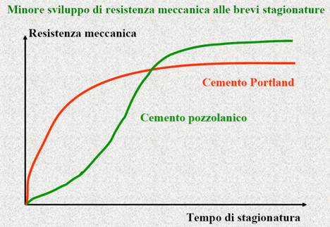 il cemento pozzolanico ha elevate proprietà ma in quello d'altoforno esse sono esaltate maggiormente.