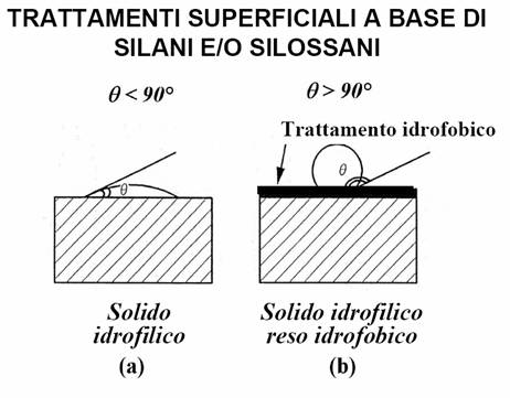 Se metto una goccia d'acqua sopra una superficie di prova in calcestruzzo succede che la goccia d'acqua tende a schiacciarsi sul materiale perché in qualche modo è attratta e quindi "l'angolo di contatto è minore di 90 gradi"; questa attrazione è la stessa responsabile per cui l'acqua tende ad essere tirata su per pressione capillare dal forellino che si trova all'interno del calcestruzzo. Dunque come su una superficie orizzontale la goccia d'acqua tende a schiacciarsi così in un forellino ipotizzato in verticale la gocciolina tende ad essere attratta dalla parete laterale. Più piccolo è il diametro del poro più alta è l'altezza di risalita capillare. È lo stesso fenomeno che bagna al piede le murature: gli edifici in muratura ad una certa altezza sono umidi se ovviamente non è stato fatto bene un drenaggio alla base anche perché i pori capillari del mattone funzionano esattamente come i pori capillari del calcestruzzo e quindi tendono ad attirare su l'acqua.