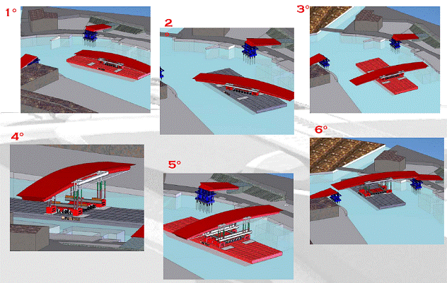 Il montaggio in acqua con l'ausilio di castelletti e tiranti.