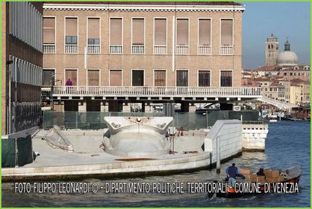Nonostante sia stata scelta la notte per approfittare del traffico ridotto, il trasporto dei conci è stata un'operazione alquanto complessa che ha attirato molti curiosi lungo le sponde dei canali e sopra i ponti. Le operazioni di trasporto sulle chiatte attraverso il canale sono state programmate in base all'andamento delle maree. Infatti, calcolare il rapporto esatto fra il peso del convoglio e la quota del livello dell'acqua era indispensabile per evitare danni, soprattutto durante il passaggio sotto il ponte di Rialto. Il peso complessivo era dato non solo dal singolo concio ma anche dal carrello trasportatore in grado di ruotarlo, una volta raggiunta la posizione di montaggio, oltre che dalla chiatta stessa. L'operazione era stata calcolata in modo esatto da prevedere che la chiatta avesse un pescaggio fino a dieci centimetri dal fondale e che la distanza minima in verticale sull'arco del ponte fosse di 80 cm. Per questo, la ditta incaricata del lavoro, la Fagioli Group, specializzata in trasporti pesanti, ha dovuto studiare attentamente la dimensione delle chiatte e la loro movimentazione. Una volta arrivati a destinazione, i singoli conci sono stati ruotati sulla chiatta, grazie al fatto che poggiavano su appositi carrelli, in modo da poter essere montati in serie.