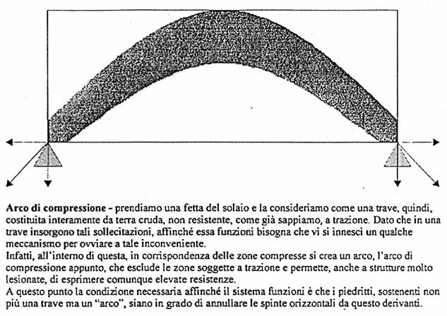 Basta aumentare talmente tanto lo spessore del solaio che al suo interno nasce una struttura ad arco, che è una struttura che resiste a compressione e trasforma le sollecitazioni in spinte orizzontali, allora i muri perimetrali dovevano essere molto spesi.