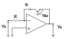 Dal circuito si ha: Vs=Veb  ed anche: Vo=-IcR,  da cui: