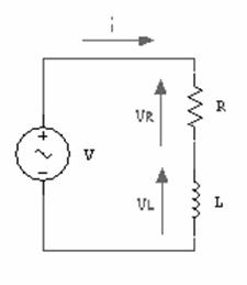 Il circuito RL in serie si compone di una resistenza e di una bobina posti in serie con un generatore di corrente alternata. Nello schema: