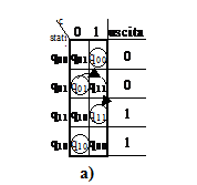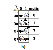 a) conta mod-2 i fronti di discesa (flip-flop); b) conta mod-4 entrambi i fronti