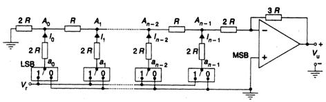 Questo tipo di convertitore D/A sfrutta, per la conversione, lo stesso principio di quello a resistenze pesate ma presenta il vantaggio di utilizza-re resistenze di due soli possibili valori R e 2R. Esistono due tipi di DAC di questo genere: