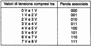 Il segnale analogico fornito dal convertitore D/A non è dunque continuo nelle ampiezze ma è formato da gradini. Ogni gradino corrisponde al valore di tensione associato alla parola.