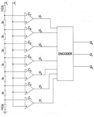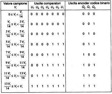 Le uscite dei comparatori vanno in un encoder che fornisce così il codice binario.